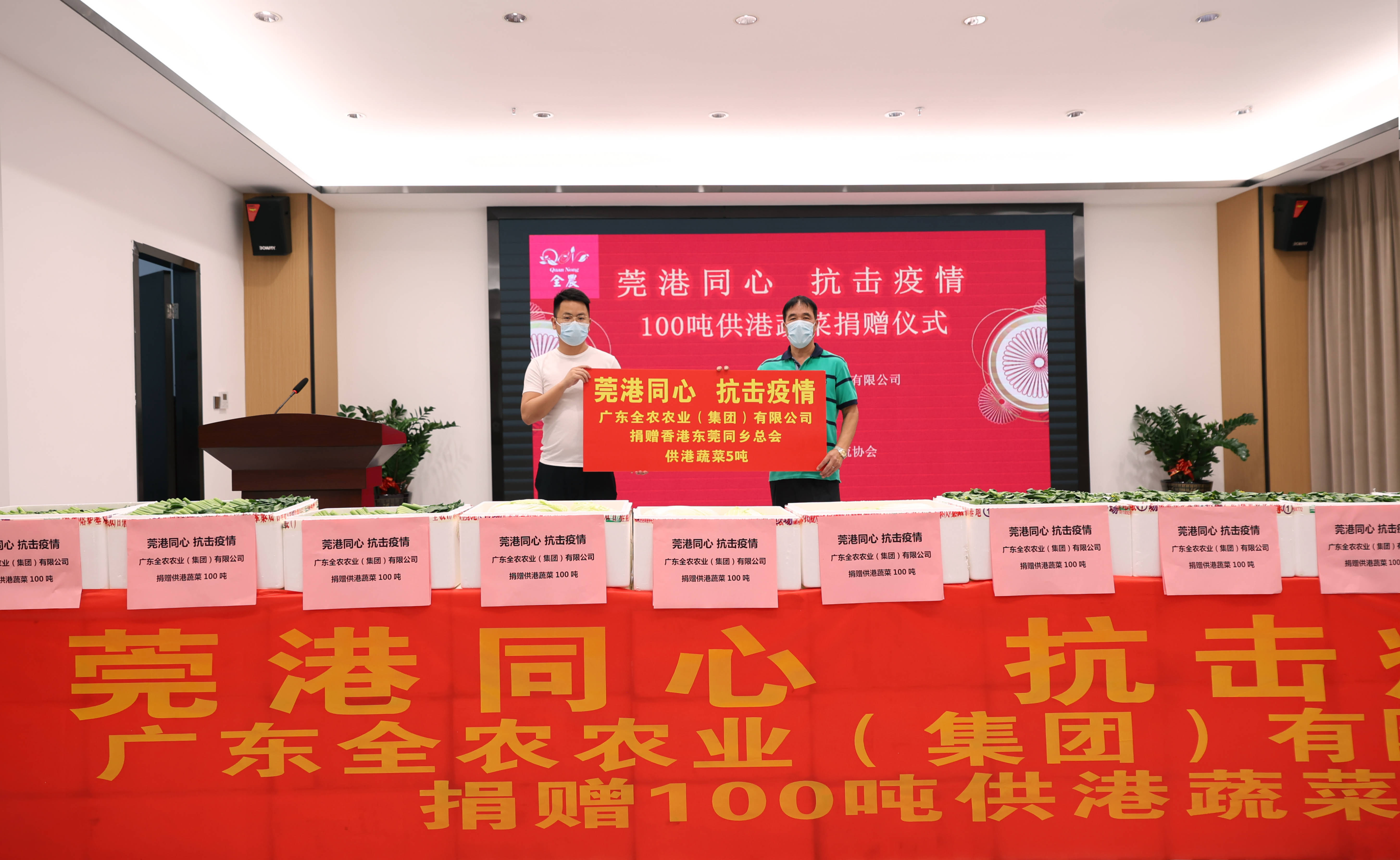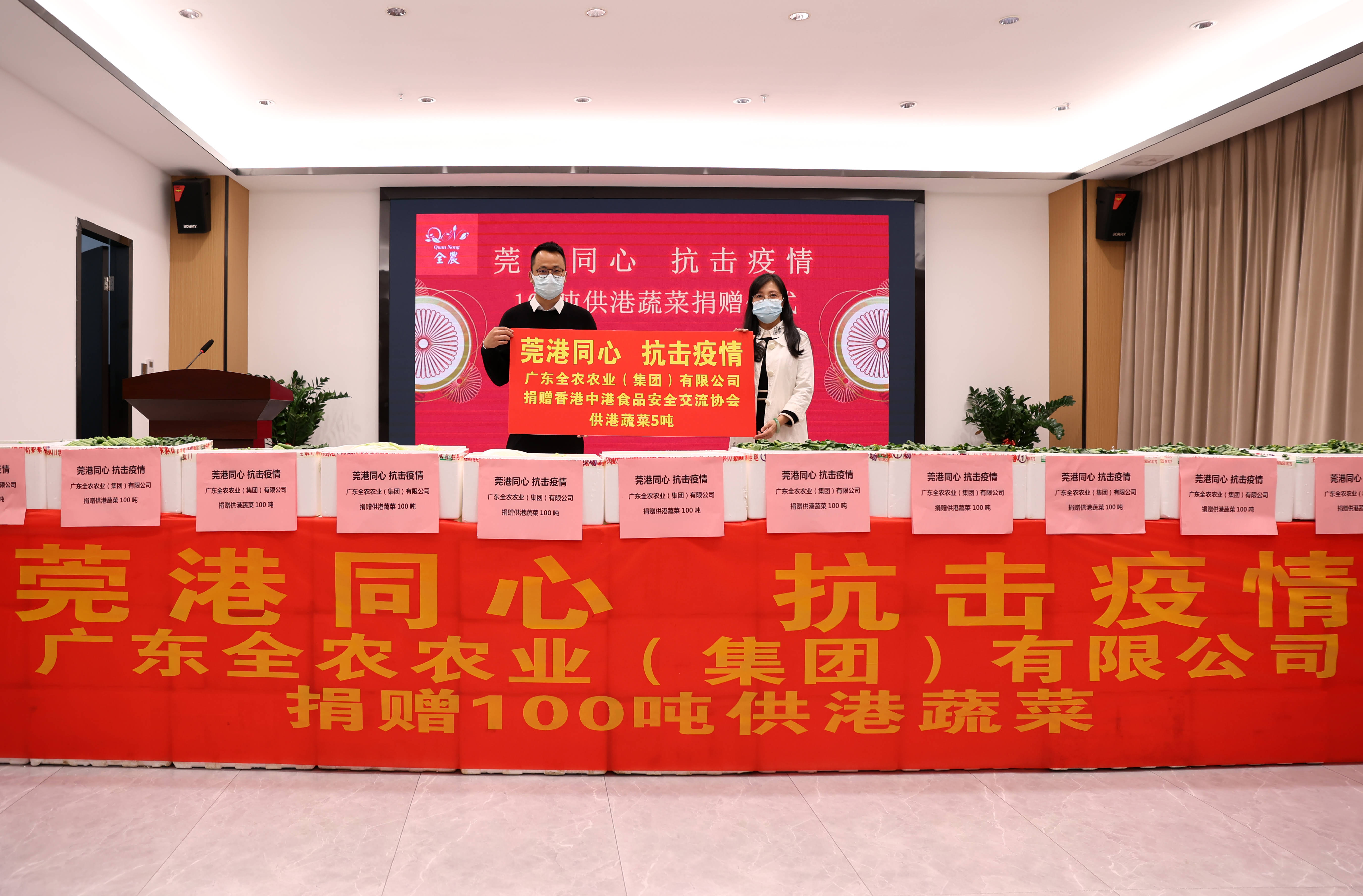 3月10日上午我司舉行了“莞港同心,抗擊疫情”100噸供港蔬菜捐贈(zèng)儀式。第一批總重量約10噸的新鮮蔬菜預(yù)計(jì)兩個(gè)小時(shí)后到達(dá)香港。剩余90噸將陸續(xù)捐贈(zèng)給香港不同社會(huì)團(tuán)體組織,送往有需要的市民手上,為香港抗疫出一份力。